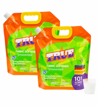 2 Pack of Unscented True Plant Based Fabric Softener is a plant-based fabric softener, made from Cotton Seeds. It conditions fibers to make clothes softer and fresher with every wash. It's biodegradable and safe for your entire family. Your clothes will feel soft and be reduced of static and wrinkles. True Plant Based Fabric Softener is the must-have addition to laundry day.