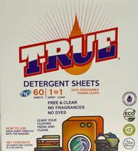 60 Count True Biodegradable HE Laundry Detergent Sheet leaves your clothes Fresh and Clean. 100% dissolvable, Plant Powered, Hypoallergenic , Phosphate Free, No Formaldehyde.